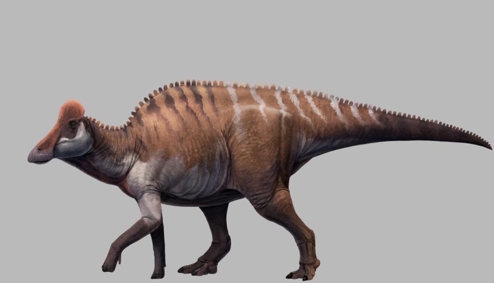 鴨嘴龍類恐龍因長著如鴨子一樣的扁平嘴巴而得名,具有強大的咀嚼能力,是繁盛于白堊紀的植食性恐龍族群,賴氏龍亞科是其優勢類群之一。賴氏龍類恐龍通常具有奇異的“頭飾”,是由拉長的中空鼻骨組成??茖W家判斷,這種“頭飾”可能會發出類似小號等樂器的聲音,用于成員間的交流。