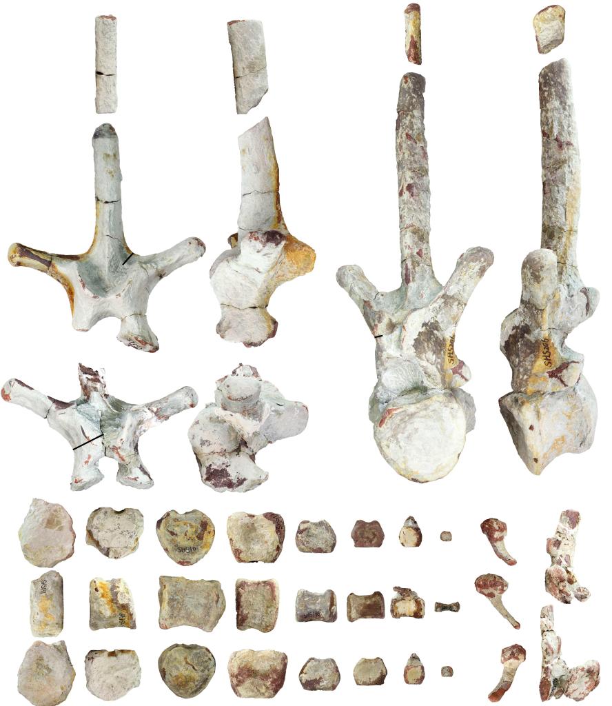 圖為四會賴氏龍類恐龍化石標本的背椎和尾椎。(受訪者供圖)