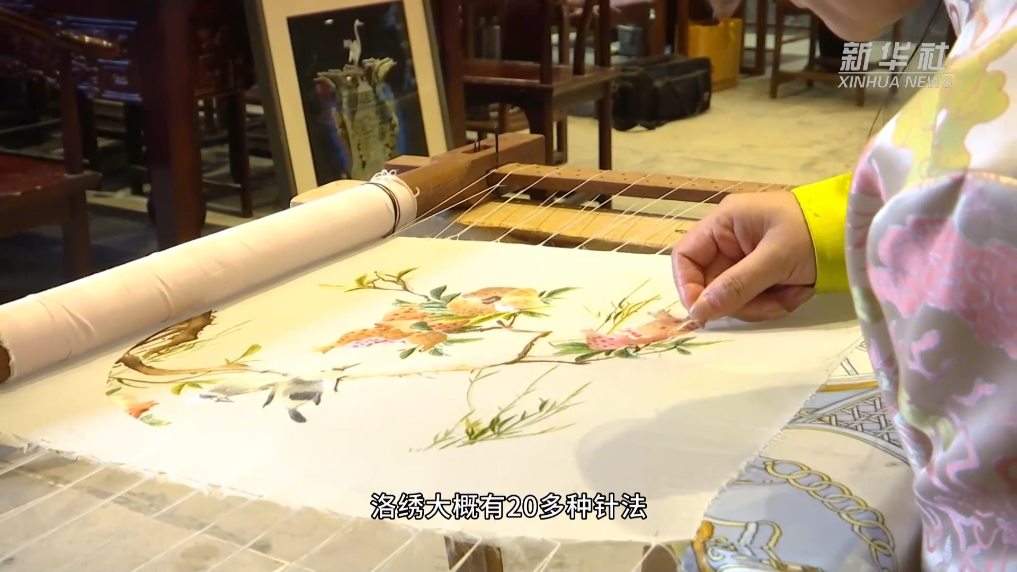 在河南洛陽“清心唐”洛繡美學空間,耿青青正在教授徒弟們,亮麗的絲線隨繡花針穿引其中,一個個栩栩如生的形象展現出來。