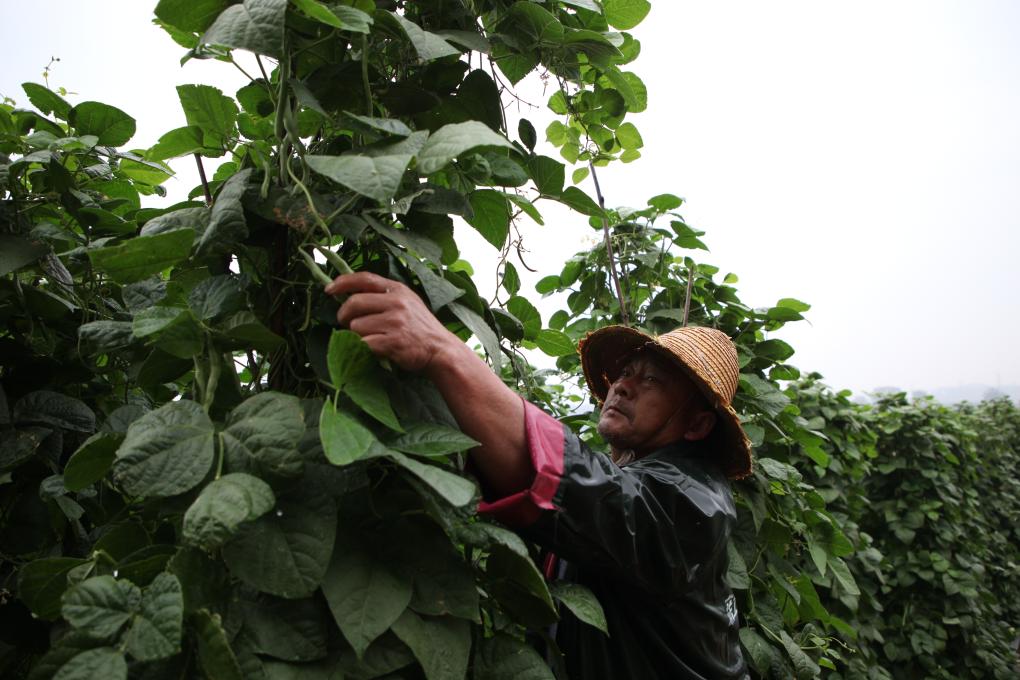 農民在采摘四季豆。新華社發(楊俊鵬 攝)