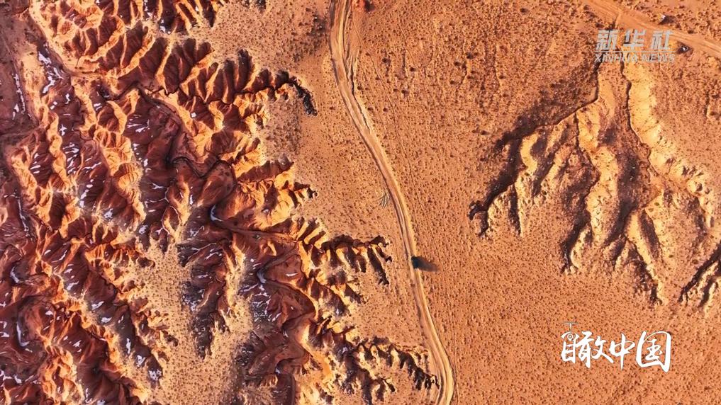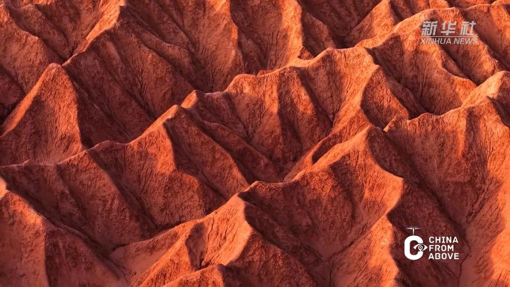 內蒙古鄂爾多斯市杭錦旗巴拉貢鎮東南方向,一片赤色土地在荒漠中蜿蜒,由砂質土狀塊體構造的褶皺大地,仿佛置身于火星,來了一場“星際穿越”。