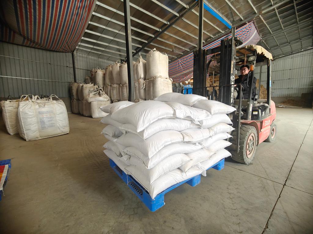 段譽用叉車轉運剛到的一批種子。新華社記者周勉 攝