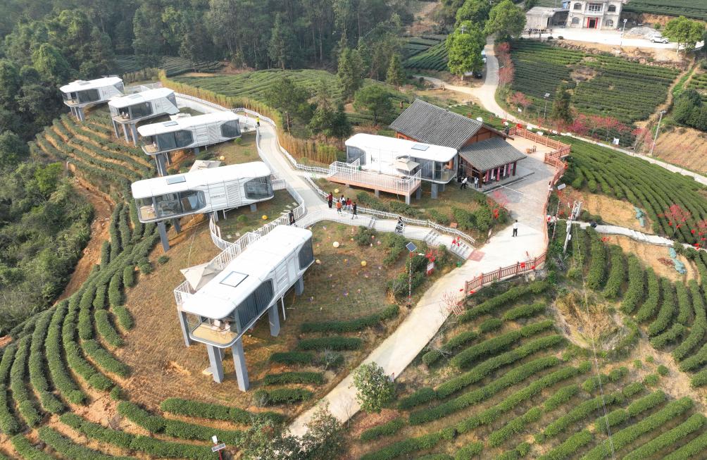 為讓游客在此體會“人茶合一”,羅述長設計了6座“懸浮”于茶山之上的太空艙民宿。旅居于此,抬頭看日出日落繁星閃爍,腳下是有機茶園郁郁蔥蔥?!白≡谶@里可以滌蕩心靈,整個人都會神清氣爽?!斌w驗太空艙的游客勞婉靜說。