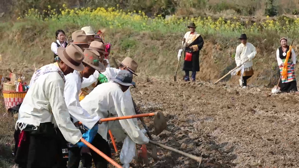 儀式現場,村民們遵循傳統習俗,唱起悠揚的豐收歌,在田間地頭犁地播種。