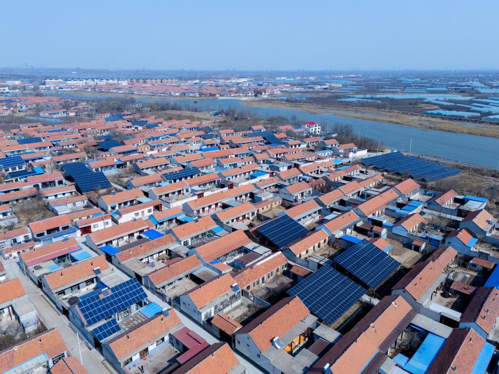在山東省濱州市沾化區下洼鎮,不少村民在屋頂安裝了光伏板。新華社發