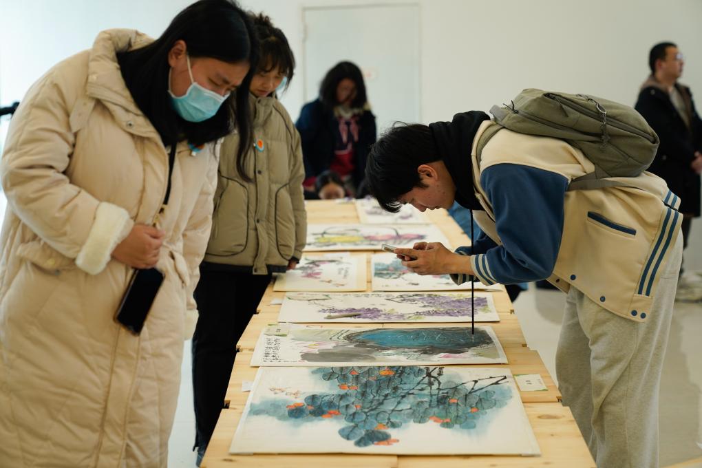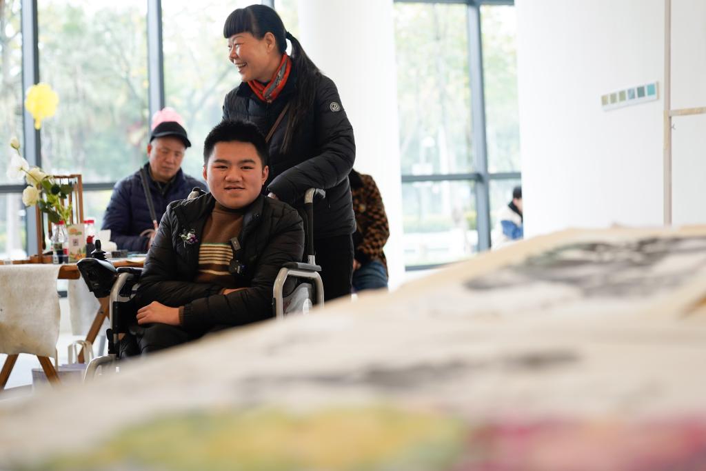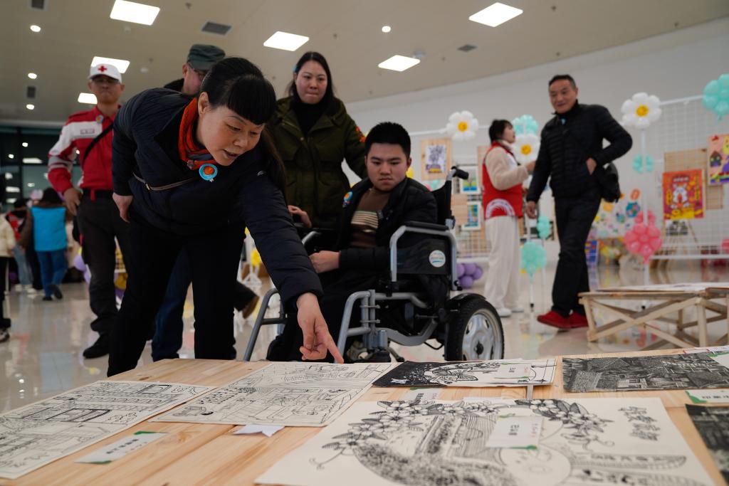 3月17日,在“X星球——藝能特展百人計劃”活動上,胡星外婆(前左)檢查作品標簽牌。