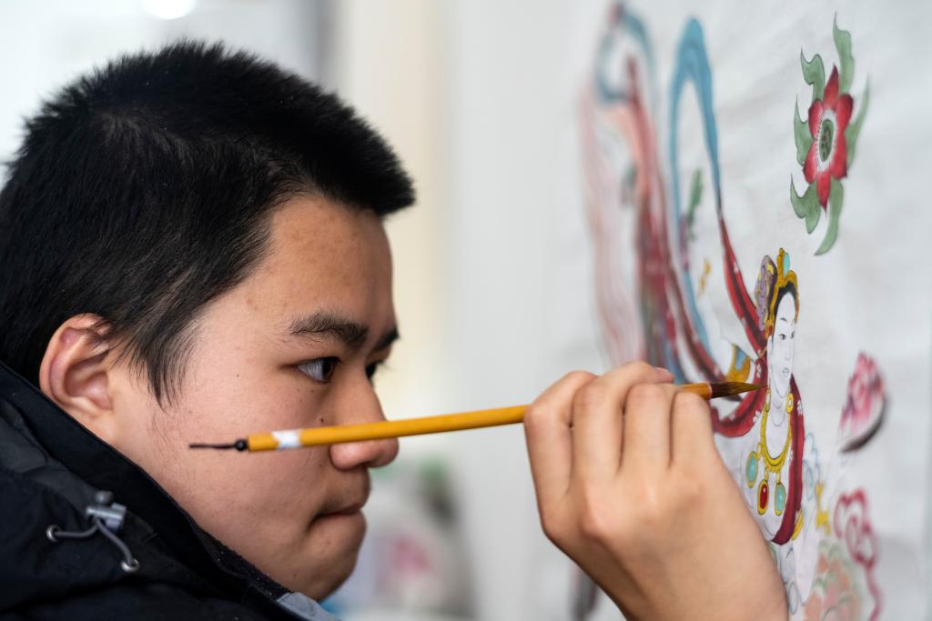 2月26日,胡星在創作繪畫作品。