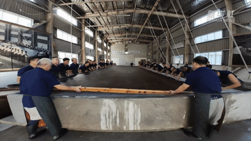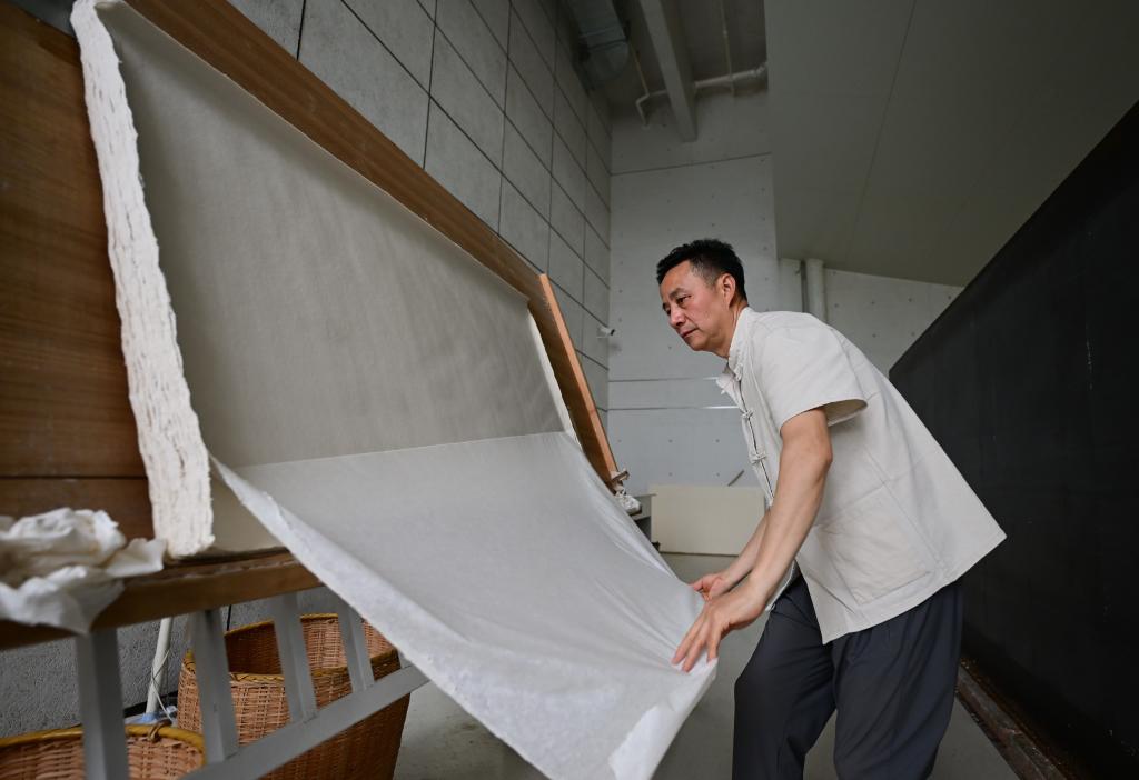 3月6日,在位于涇縣中國宣紙小鎮的宣紙文化園,工人進行曬紙作業和展示。新華社記者 周牧 攝