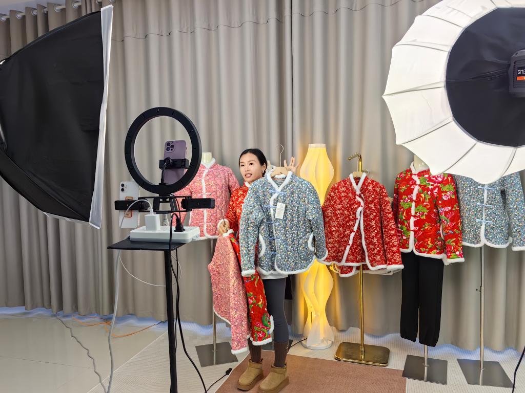 “家人們,這是新款國風棉服,現在幾十塊錢就可以帶回家……”在東昌府區農村電商產業園內,主播正在直播帶貨。產業園電商運營部負責人朱瑞娜介紹,許多消費者把棉襖當成居家服、演出服,近期棉襖在電商平臺上的日均銷售額達10萬元,火紅的買賣已帶動多名農家婦女主動學習如何做主播,她們的精氣神越來越足。