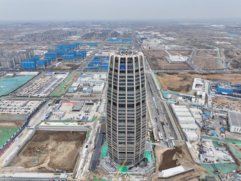 春日白洋淀碧波蕩漾,不遠處,簇新的中國中化大廈如一株“金蘆葦”挺拔于雄安啟動區核心地段。仰觀其形,16根外露結構柱以向上收分的姿態直指蒼穹,既似蘆葦莖稈的自然生長,又有飛檐立柱的古典韻律。