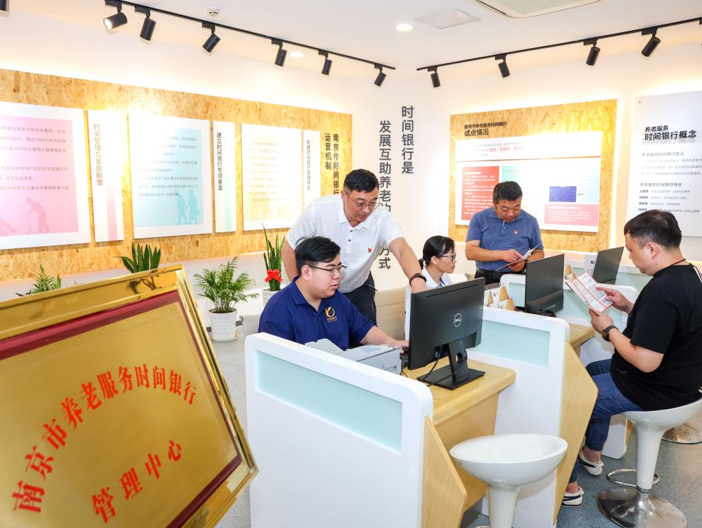 圖為2024年9月2日,南京市民政局養老服務處工作人員在南京市養老服務“時間銀行”管理中心協助檢查登記注冊信息。(受訪者供圖)