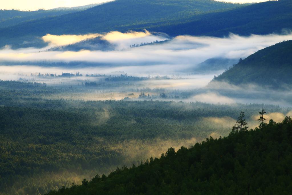 這是在內蒙古額爾古納國家級自然保護區拍攝的云霧林海風光。(內蒙古森工集團供圖)