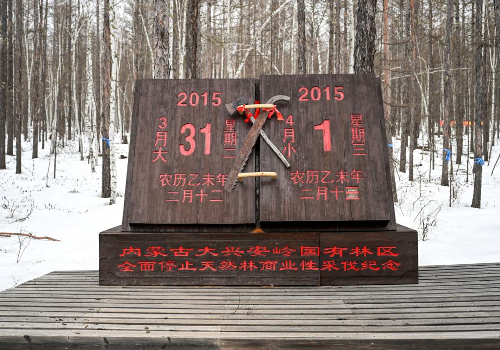 這是內蒙古大興安嶺國有林區全面停止天然林商業采伐紀念碑。新華社記者連振 攝