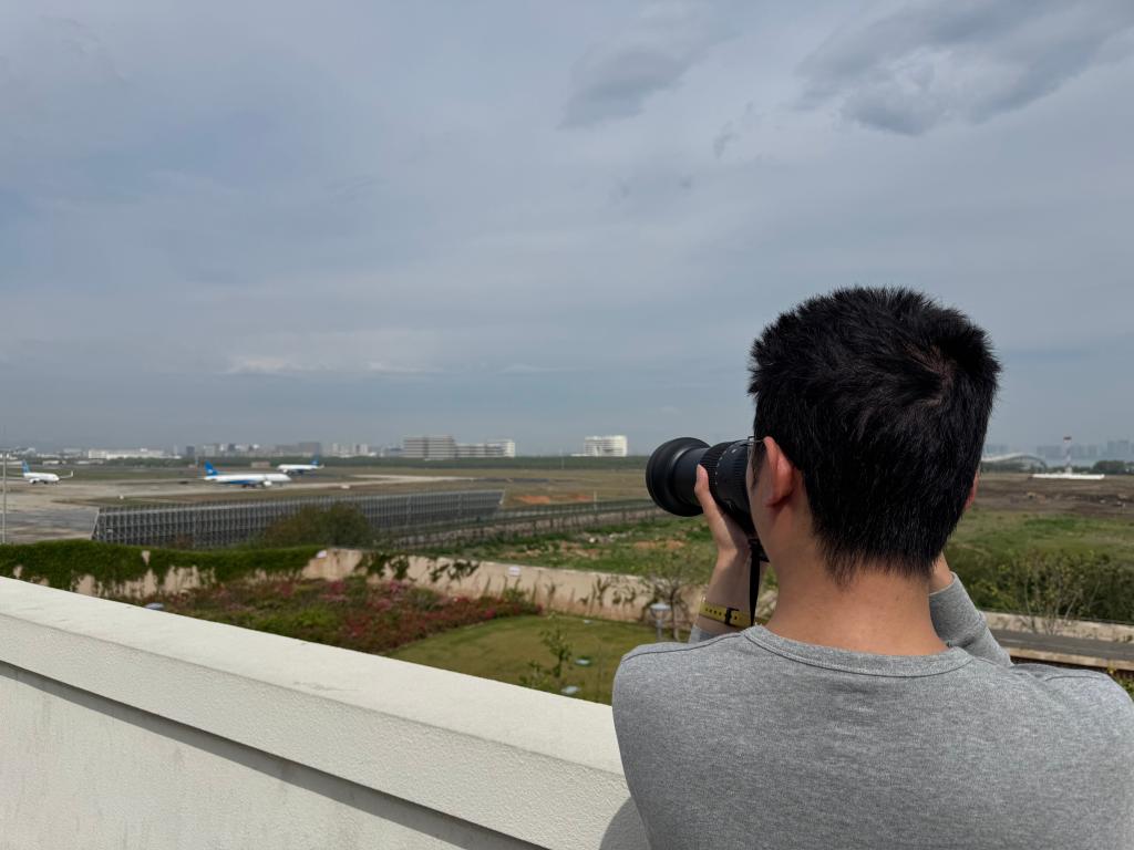 還有一些人,到廈門只做拍飛機這一件事。在花嶼悅海園的“漫步云端”觀景平臺上,一位攜帶專業設備的攝影師引起了記者的注意?!斑@次是專程過來拍飛機的?!眮碜灾貞c的教師孫先生告訴記者,這是他第一次來廈門,為了來拍飛機,他還專門做了攻略,利用四天時間“轉戰”多個“打卡點”拍攝。在這個點位上,能夠近距離欣賞高崎國際機場內的飛機起降,當地工作人員還貼心準備了定制相框,用于市民游客與起降飛機合影。