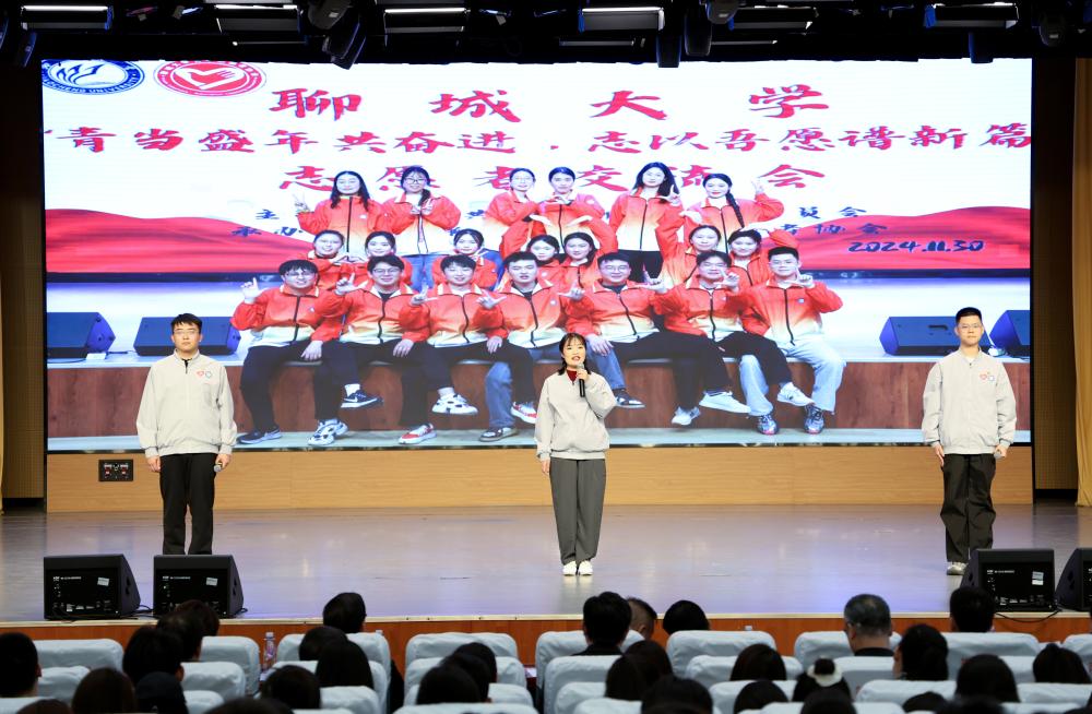 聊城大學第三屆西部計劃文化節開幕式上,學生代表分享個人成長經歷。(受訪單位供圖)