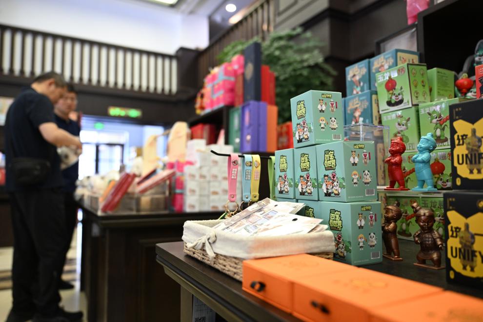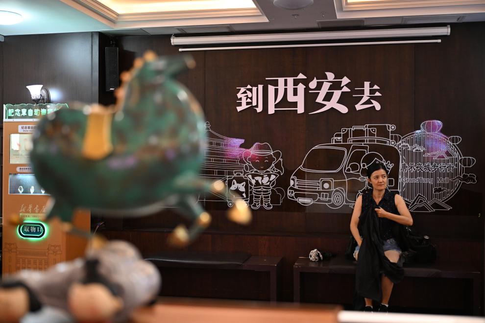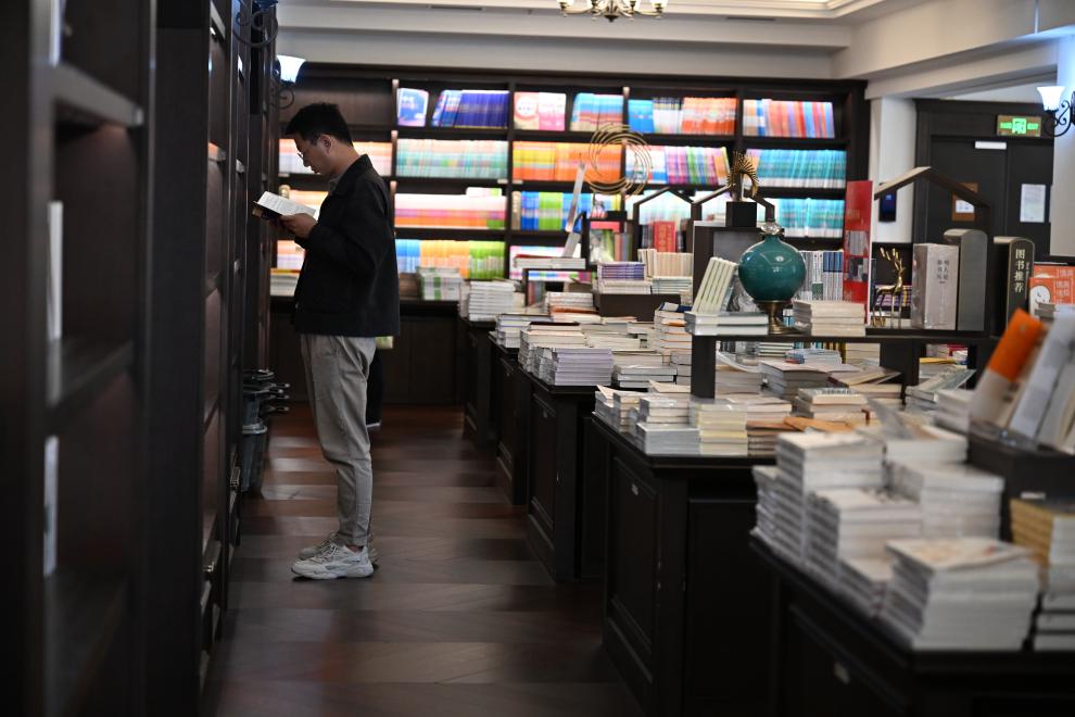 游客在西安鐘樓書店選購文創產品。新華社記者 張博文 攝