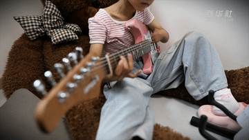 在安徽安慶,8歲女孩丁心怡(昵稱 “逗逗”)用一把特制的反手吉他,彈奏出震撼人心的生命旋律。