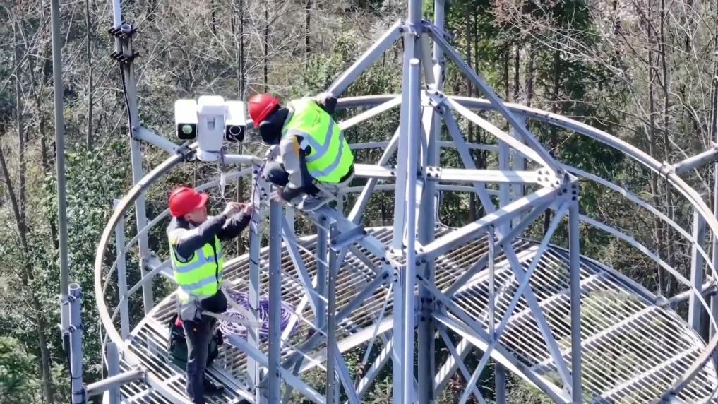 夏季是森林火災高發期,武夷山市生態環保綜合指揮中心的工作人員來到洋莊鄉大安村,安裝調試高空瞭望云臺。這些高空瞭望云臺可覆蓋半徑3公里區域,具備異常溫度與煙霧火情AI自動識別功能。