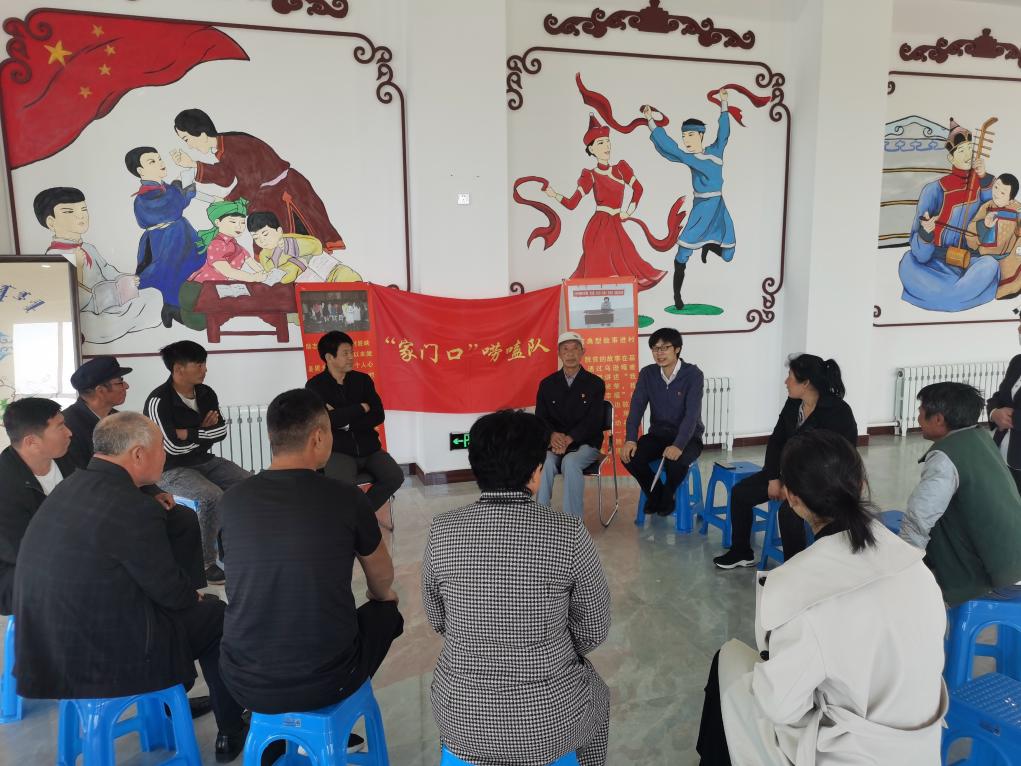 這是烏遜嘎查“家門口”嘮嗑隊向農牧民宣講。新華社發(孟天亮 攝)