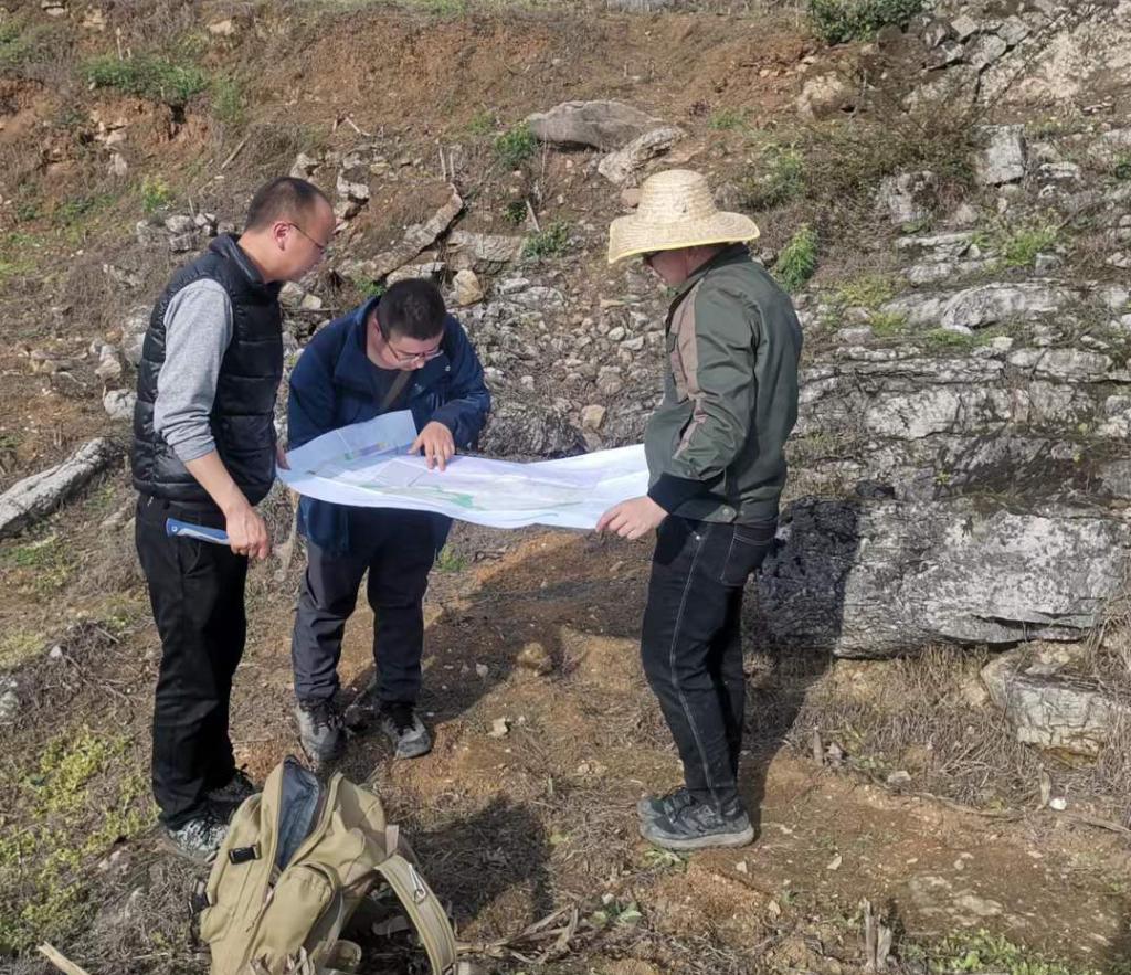 汪家寨鋁土礦普查項目實施過程中,工作人員在野外進行填圖工作。(受訪者供圖)