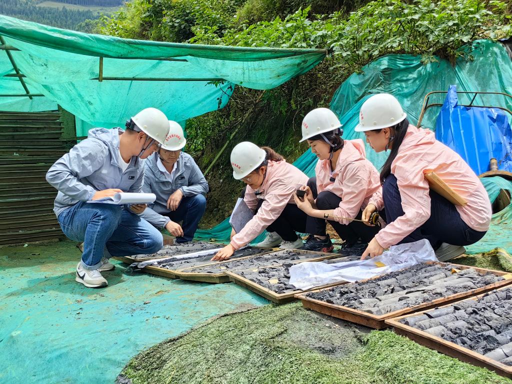 在六盤水市鐘山區塢鉛勘查區,工作人員正在進行鉆孔巖心編錄。(受訪者供圖)
