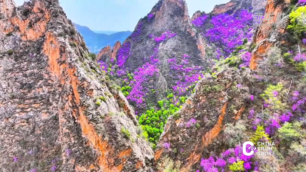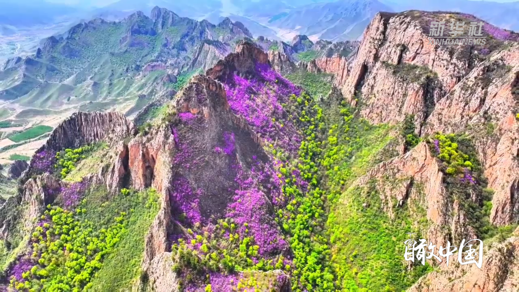 初夏時節,內蒙古自治區赤峰市克什克騰世界地質公園內,紫霞般的杜鵑花沿著平頂山間鋪展,繪就出一幅花色浸染的山海畫卷。