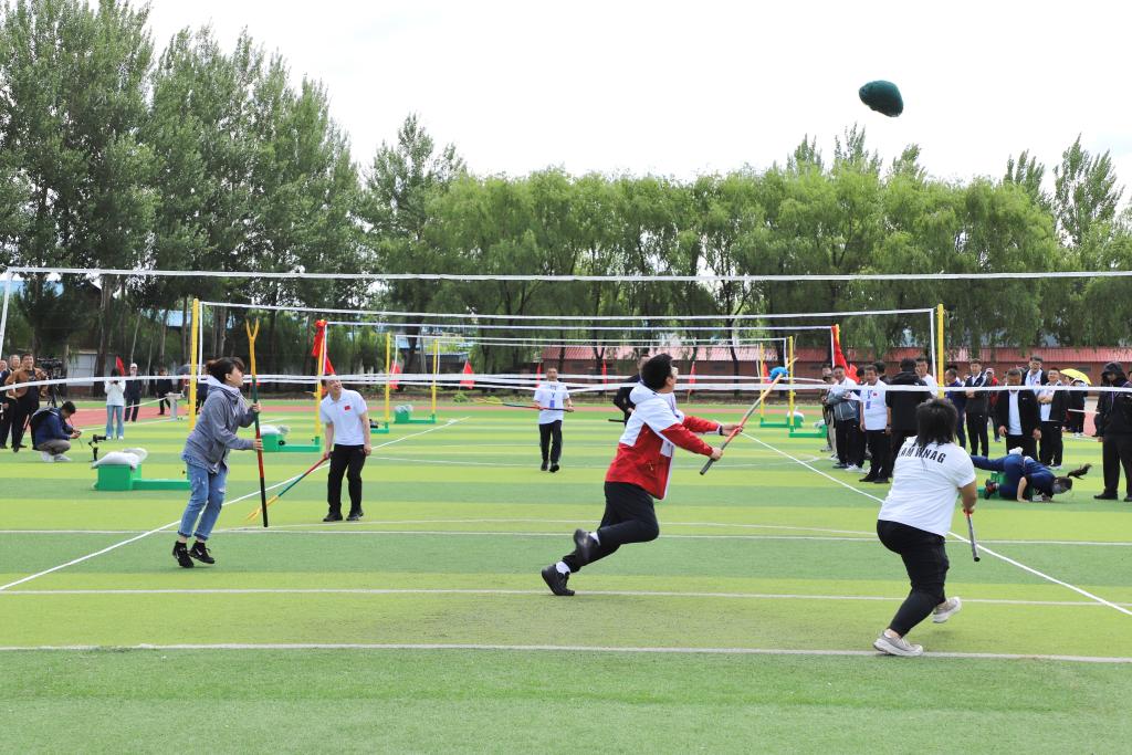 在赫哲族第十二屆烏日貢大會現場正在進行叉草球項目比賽。新華社記者徐凱鑫攝