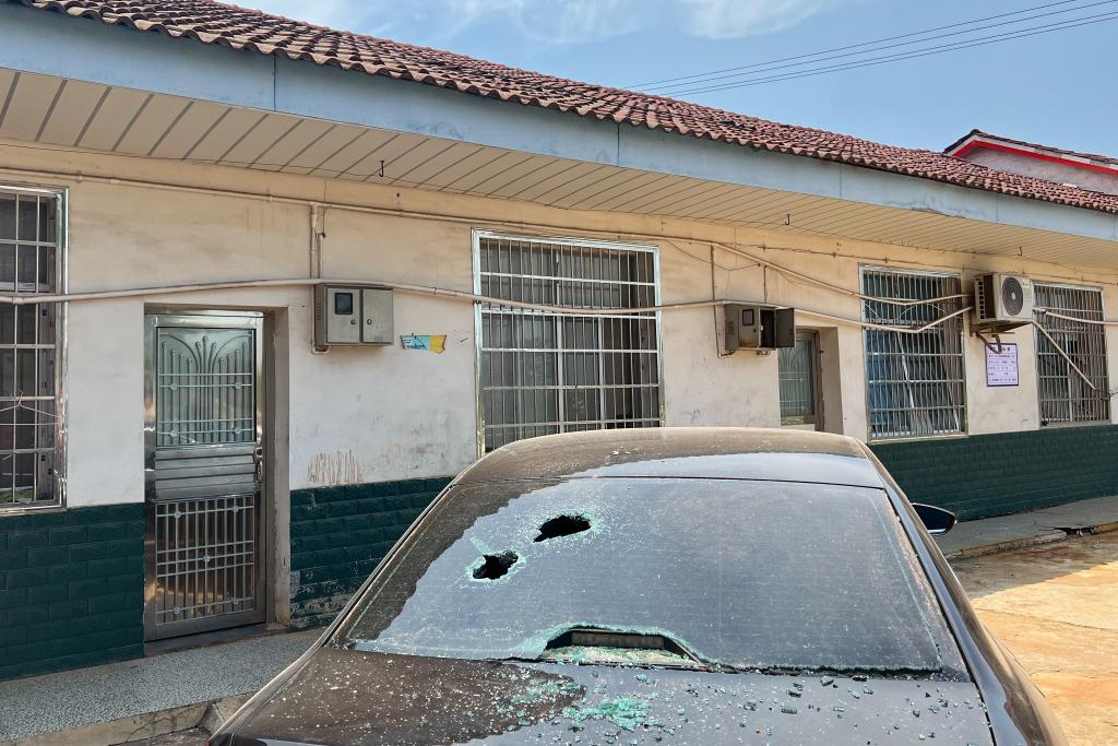 一輛停在現場附近的車輛因爆炸受損。新華社記者陳振海 攝