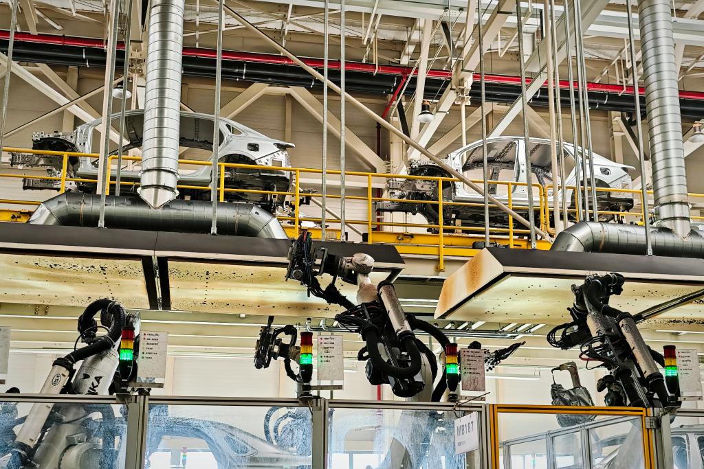 走進吉利汽車長興生產基地,沖壓、焊裝、涂裝、總裝等生產線上,機器轟鳴不斷、機械臂上下飛舞,不到一分鐘下線一臺車。工作人員介紹,目前整個工廠擁有近1000臺工業機器人,生產自動化率已經實現100%。