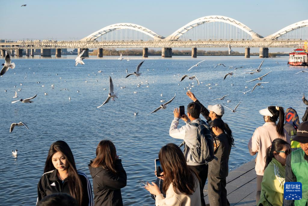 人們在松花江哈爾濱段江畔享受閑適時光(2025年4月22日攝)。新華社記者 謝劍飛 攝