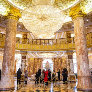 在哈爾濱市道外區,游客在哈藥六廠主樓中參觀(2024年1月17日攝)。哈藥六廠主樓為歐式風格,雄偉壯觀,被網友稱為“東北盧浮宮”,成為哈爾濱旅游的熱門打卡地。新華社記者 謝劍飛 攝