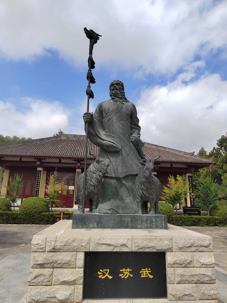 咸陽市武功縣蘇武紀念館前的蘇武雕像。(受訪者供圖)