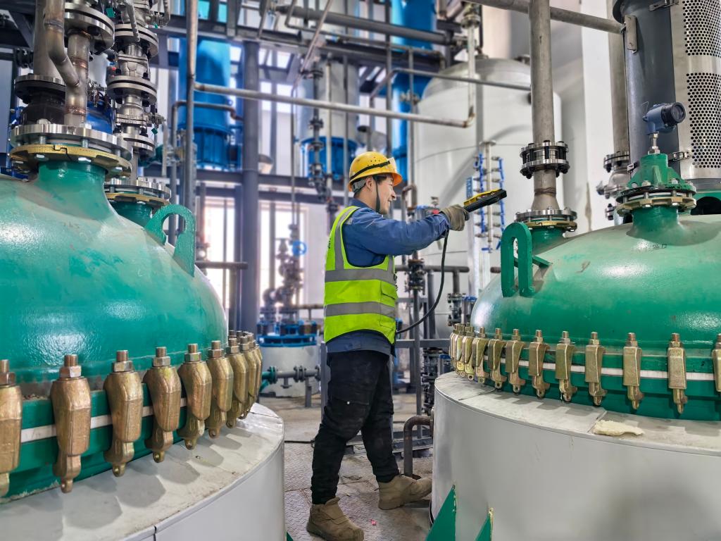工人在陜西咸陽(彬州)高端能源化工園區安裝設備(2025年2月16日攝)。新華社記者張京品 攝