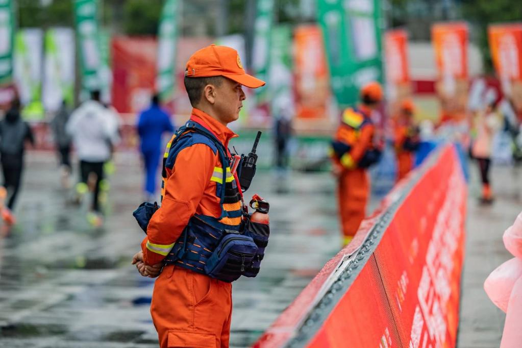 “黃馬”期間,2600多名安保人員和志愿者,構建“起點管控—沿線巡邏—終點疏導”的安保體系。組委會還在賽道沿途設置了28個醫療站點,配備了35臺AED除顫儀及24輛救護車,并每200米設一名醫療觀察員,組成“分鐘級響應”團隊。