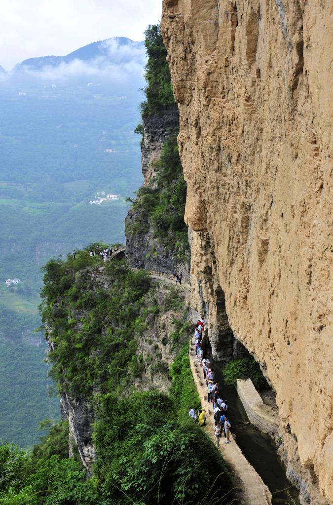 巴東群眾修建“絕壁天河”(資料照片)。新華社發