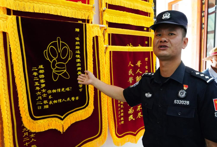 錦旗中提到最多的劉Sir、愛龍等,就是劉愛龍警官,他也是派出所的“錦旗王”。在喀納斯執勤9年來,他和同事們幫助當地牧民和游客解決的諸多困難,也化作一面面錦旗,一聲聲感謝,一封封信件。