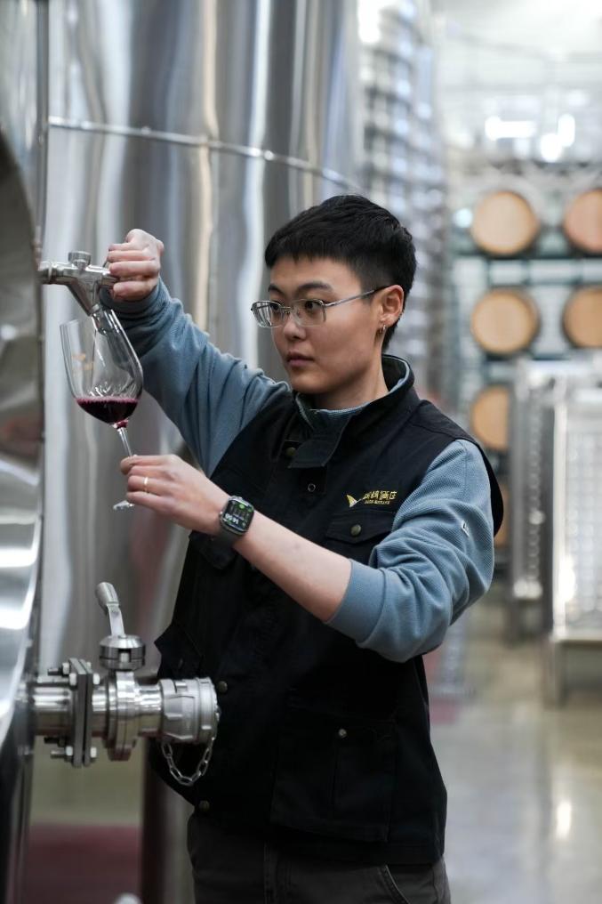 西鴿酒莊助理釀酒師王斐在釀造車間工作。(受訪者供圖)