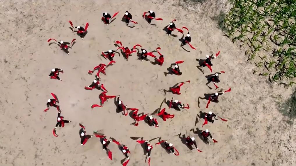 安塞腰鼓始于秦時,盛于宋代,傳承發展2000多年。它凝煉了黃土高原樸實純粹、熱烈渾厚的氣韻,擊鼓揮錘,勢如驚雷。