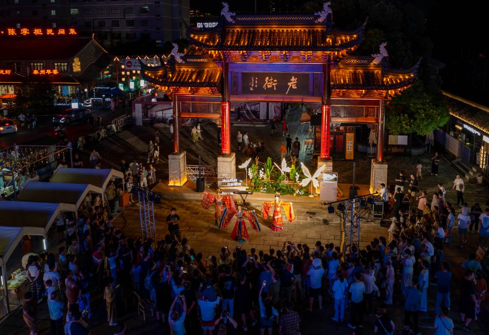 6月28日,人們在泰州市海陵區老街景區“律動蘇超音你泰美”音樂節上觀看表演(無人機照片)。新華社發(湯德宏 攝)