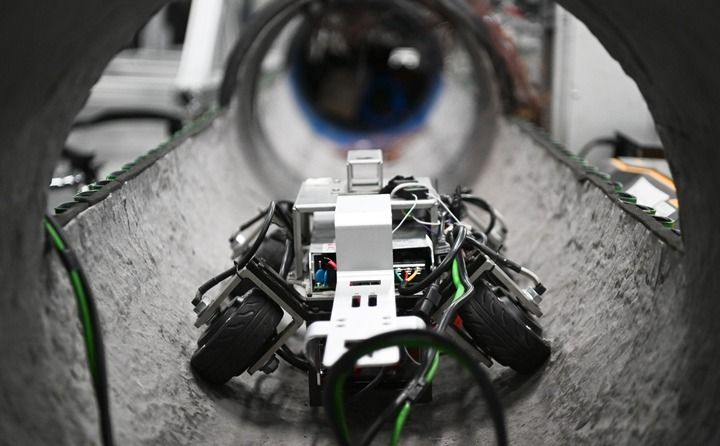 這是在深圳的廣東省具身智能機器人創新中心拍攝的管道檢測機器人(2025年6月25日攝)。新華社記者 鄧華 攝