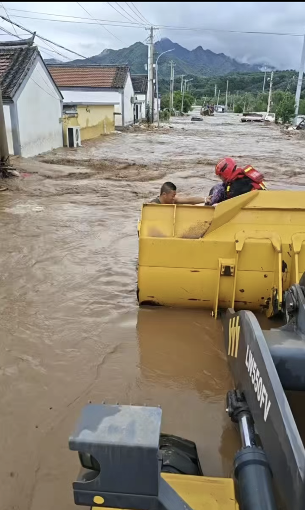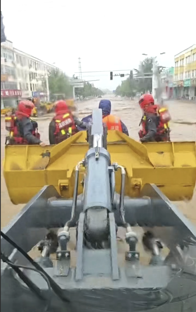 “10點,村里有些地方的洪水已有兩米多深?!蓖跆煊铋_著鏟車,經過倒塌的院墻、房屋。一路上,他的目光掃過被困村民,有的坐在窗臺上,有的站在房頂上……