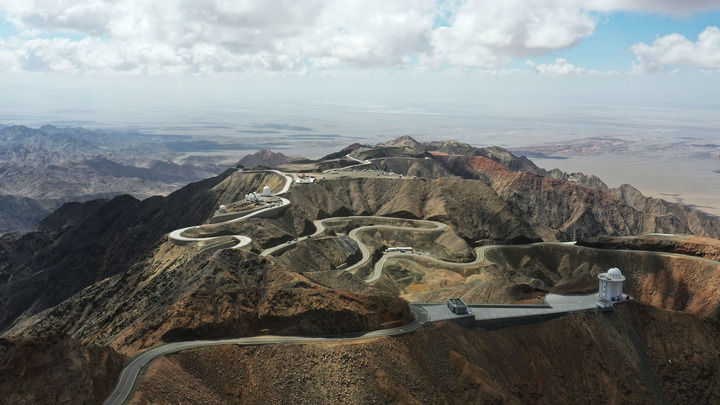 從空中俯瞰賽什騰山,蜿蜒的盤山公路如同一條飄帶,串聯起各個平臺上的望遠鏡。海拔4200米的賽什騰山C平臺上,矗立著由中國科學技術大學與中國科學院紫金山天文臺共建的墨子巡天望遠鏡。墨子巡天望遠鏡總設計師孔旭介紹,作為目前北半球光學時域巡天能力最強的設備,“墨子”擁有一批硬核關鍵技術,每三晚可巡測整個北天球一次。