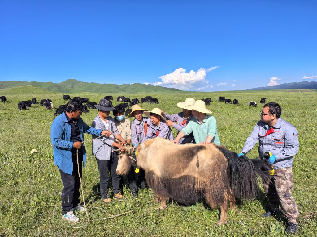 潘陽陽介紹,自2013年開始,科研團隊就在當地開展人工授精、胚胎移植、雜交育種等多項技術服務??蒲袌F隊通過“娟姍牛人工授精改良甘南牦?!表椖颗嘤鲭s交娟犏牛。相較于普通牦牛,這種牛產奶量提高10倍,產肉量提高2倍,繁殖效率從3年2胎提高到1年1胎,有助于減畜不減產。
