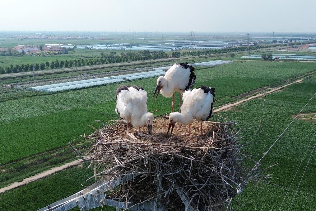 隨著東方白鸛數量持續增長,電力工程師們又推出了“上占位、中阻擋、下包覆”的立體防護體系,即在鐵塔上方東方白鸛容易筑巢的地方裝設占位器,中間位置安裝新型絕緣防鳥罩,下方對線路、金具等進行絕緣包覆。