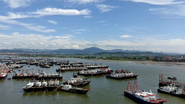 8月16日,停泊在茂名博賀漁港的漁船等待開漁。新華社記者 肖恩楠 攝