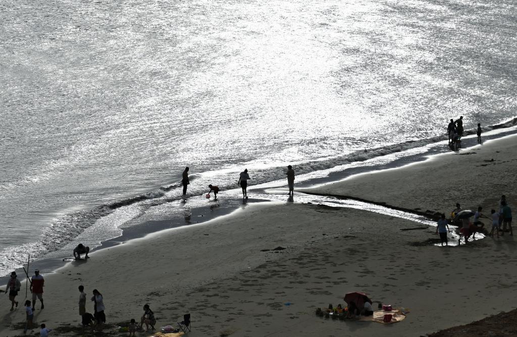 8月16日,游客在廣東省茂名市西葛驛站沙灘游玩。新華社記者 肖恩楠 攝