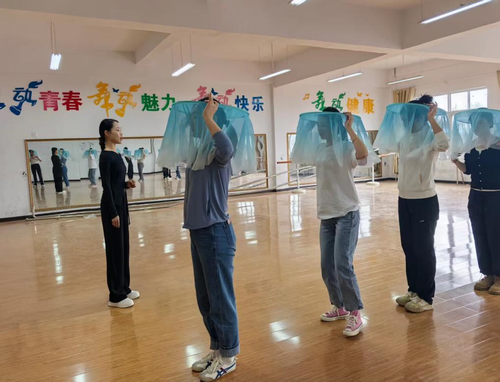 4月15日,龍玲(左一)在貴州省松桃苗族自治縣大坪場鎮進行“村晚”節目輔導。(受訪者供圖)