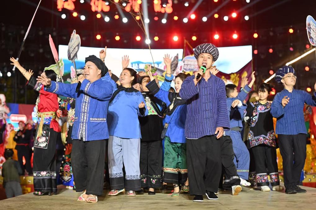 數字化讓“村晚”走得更遠。截至目前,松桃“村晚”已直播近30場,單場最高觀看人次達185萬,抖音話題“松桃村晚”視頻播放量達5.2億次?!按逋怼?還實現從“送文化”到“創文化”的轉變,過去多是專業演出隊伍策劃編排好節目,再到基層演出,村民作為觀眾被動接收文化服務;如今從節目主題構思、內容編排,到最終的舞臺表演,均由村民自己完成,已有近4000位村民登臺表演,170余項非遺得以展示。依托“村晚”帶來的文旅熱度,當地旅游消費等增加綜合收入1200萬元,同時解決上千人就業。