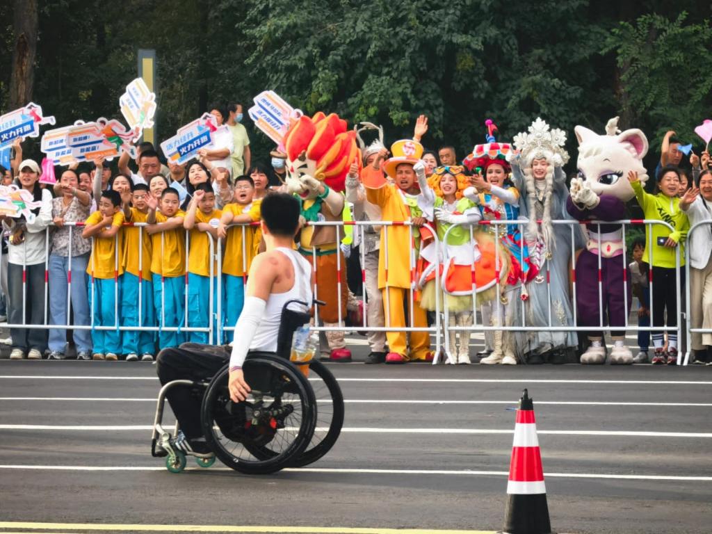 在跑者隊伍中有10余名輪椅跑者