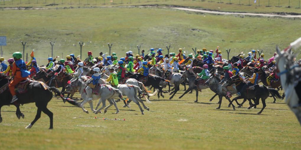 2024年8月12日,騎手在2024年恰青賽馬節傳統十公里大跑項目中角逐。新華社記者 晉美多吉 攝